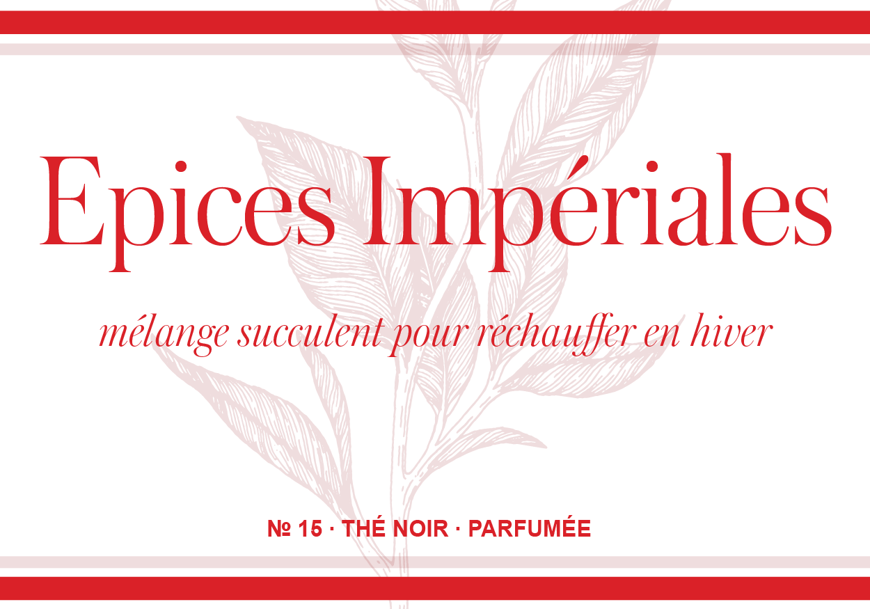 Le thé Epices impériales est un thé noir généreusement épicé et délicatement fruité. Il est parfumé aux épices, agrumes et gingembre agrémentée d’écorces d’oranges, morceaux de vanille, et clous de girofle.