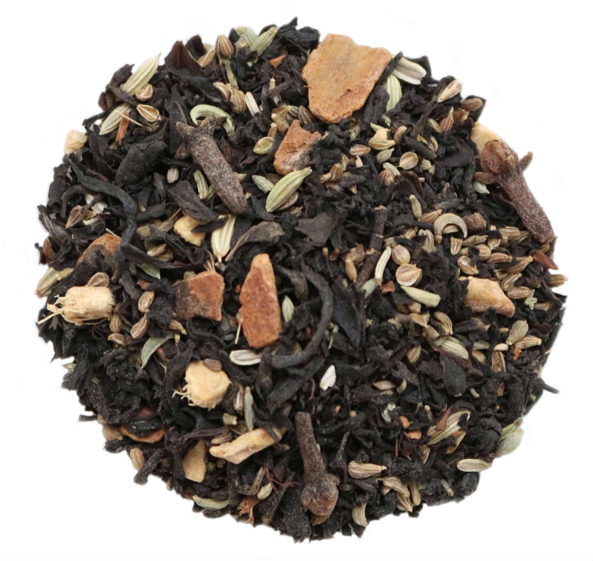 Ce chai ayurvédique associe un thé noir Assam corsé à un bouquet d’épices emblématiques de la tradition indienne : bâtons de cannelle, fenouil, gingembre, anis, clou de girofle et cardamome moulue.